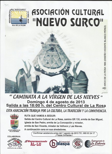 La Asociación Nuevo Surco organizó una caminata al Santuario de la Virgen de Las Nieves con motivo de la celebración de su festividad.