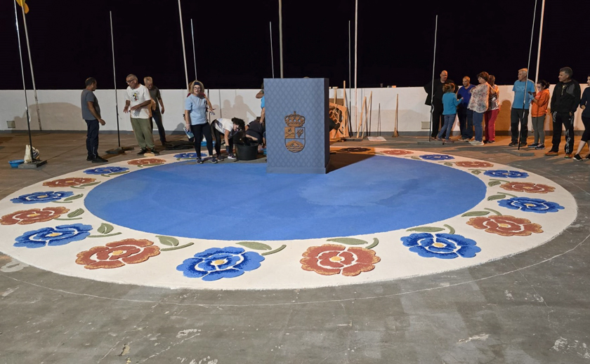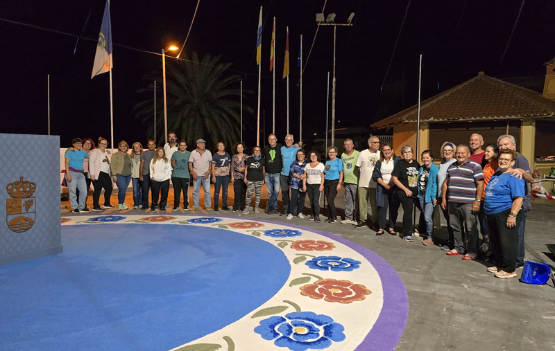 La Asociación Nuevo Surco promovió la confección de una alfombra de sal en la Plaza del Corpus para embellecer, al estilo de nuestra fiesta grande de Corpus Christi, el recibimiento de la Virgen por las autoridades locales e insulares, en el casco urbano de Villa de Mazo.