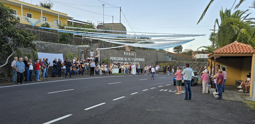 Esta Asociación también quiso ofrecer un saludo afectuoso a la Virgen en su barrio y, aunque no estaba en el programa de su itinerario, el cortejo hizo una breve parada en La Rosa, en el último tramo del recorrido de la Virgen por Villa de Mazo, antes de su traslado al vecino municipio de Breña Baja.