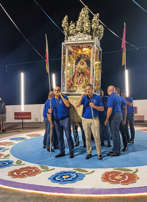 Ahora, aquí, en esta breve parada que haces en tu camino, no por ello, menos ilusionante y fervoroso. Ante este barrio laborioso y unido, se hace festivo y glorioso este instante, dejando una estela de unión y hermandad, de bendiciones y ruegos cumplidos y pedirte que sea perenne tu protección sobre nosotros.