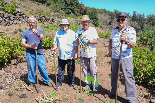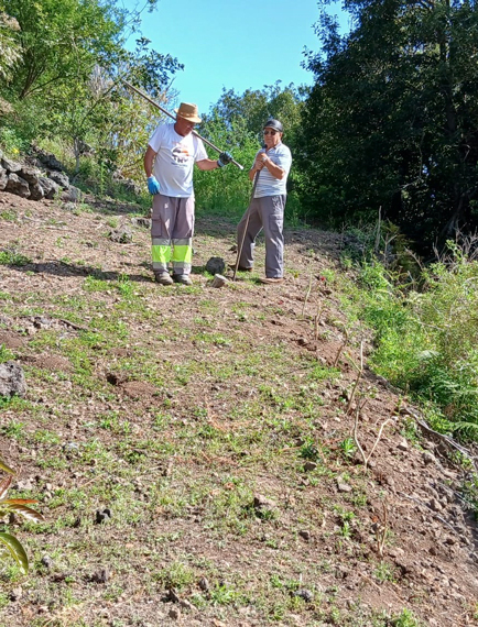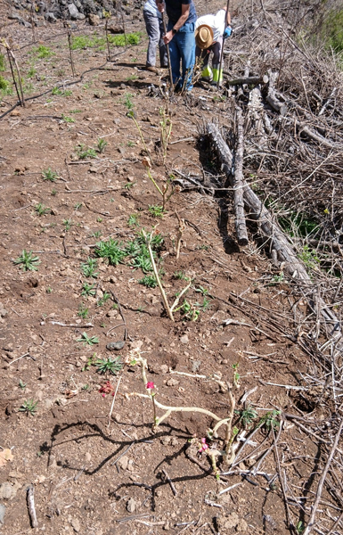 La otra actividad fue llevada a cabo el pasado domingo, 12 de abril, plantando unos trescientos esquejes de geranios en la finca particular «La Espicia», con la intención de disponer en un futuro próximo de las tan necesarias flores de esta planta para los enrames de la Fiesta de Corpus Christi.