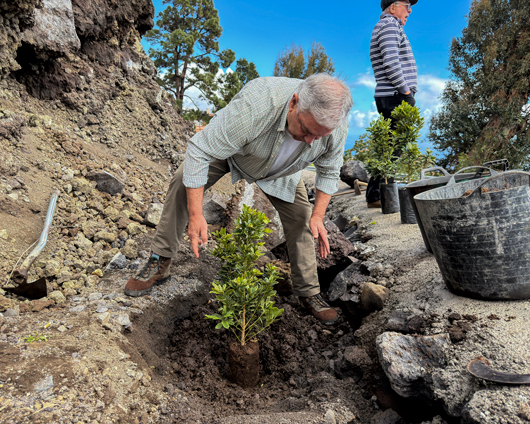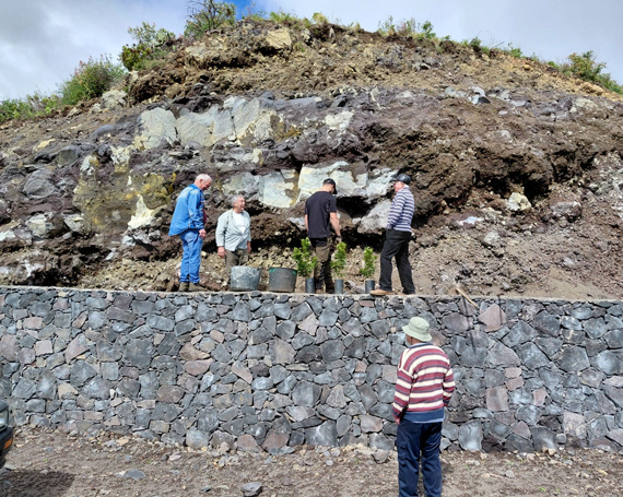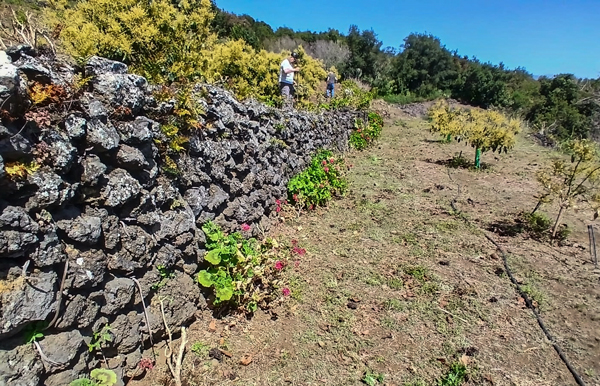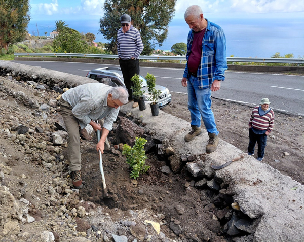 Ahora, aprovechando las obras de desmonte de este morro para mejorar el trazado de la Carretera LP 206, se sembraron estas fayas detrás del muro de contención recientemente construido, para hacer honor al topónimo y la memoria del barrio.